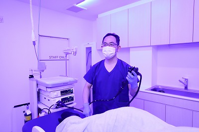 内視鏡検査では、赤い粘膜のわずかな変化を見分ける必要があります。当院では検査室の照明にブルーライトを採用し、補色効果によって粘膜の変化や病変を見つけやすくしています。これにより、より精度の高い観察を目指しています。